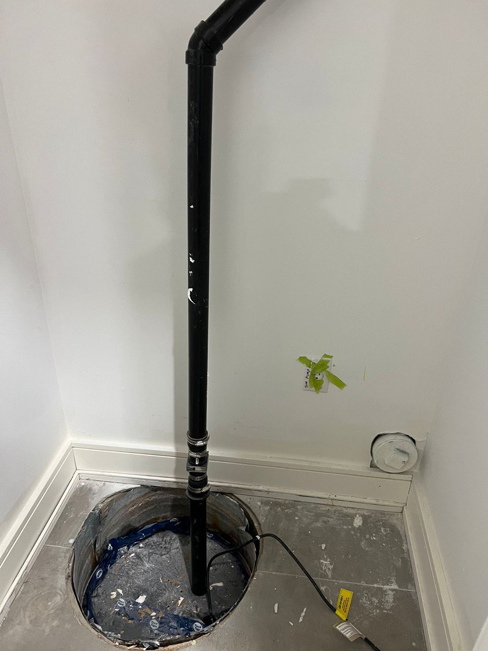 - Installed new solid ABS discharge pipe specifically designed for sump pump applications and fully compliant with Toronto and GTA plumbing codes